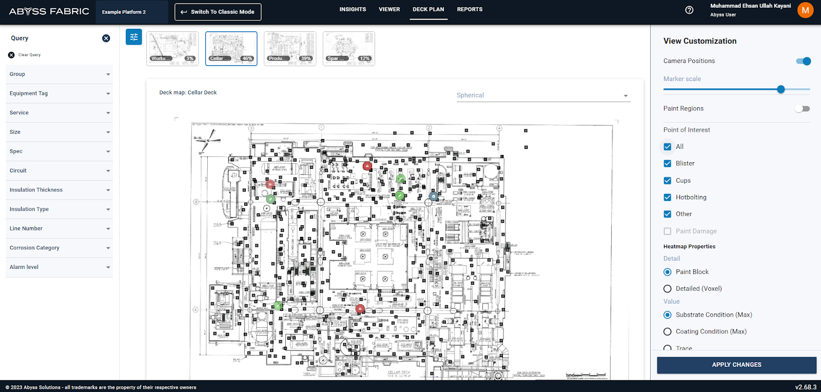 Welcome to the comprehensive user guide for the Deck Plan & Heatmap feature within Abyss Fabric. Whether you're a novice or an experienced user, this guide was crafted to simplify your navigation through the intricacies of this tool. We’ve focused on enhancing your experience by meticulously detailing the steps for deck navigation, location searching and heatmap application within Abyss Fabric. We hope this guide helps you unlock the full potential of Abyss Fabric's Heatmap feature.
